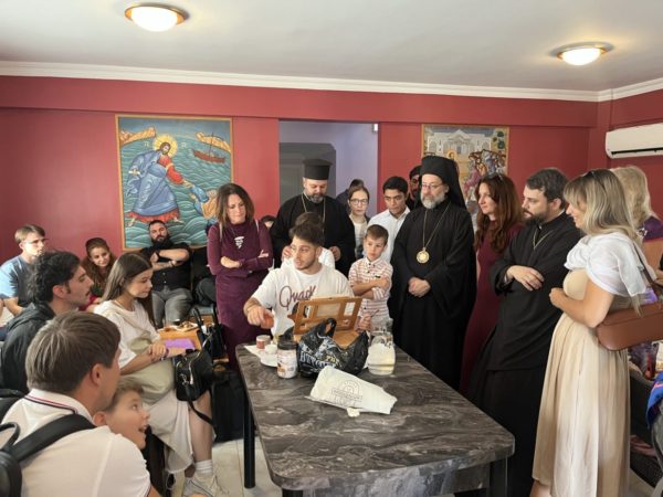 On the same day, Mr. Elias Kriaz was tonsured as a reader. The morning continued with breakfast accompanied by music performed by the youth of the Parish of Side, followed by an iconography workshop presented by Mr. Ioakeim Koumousis, a fine arts student from Athens.