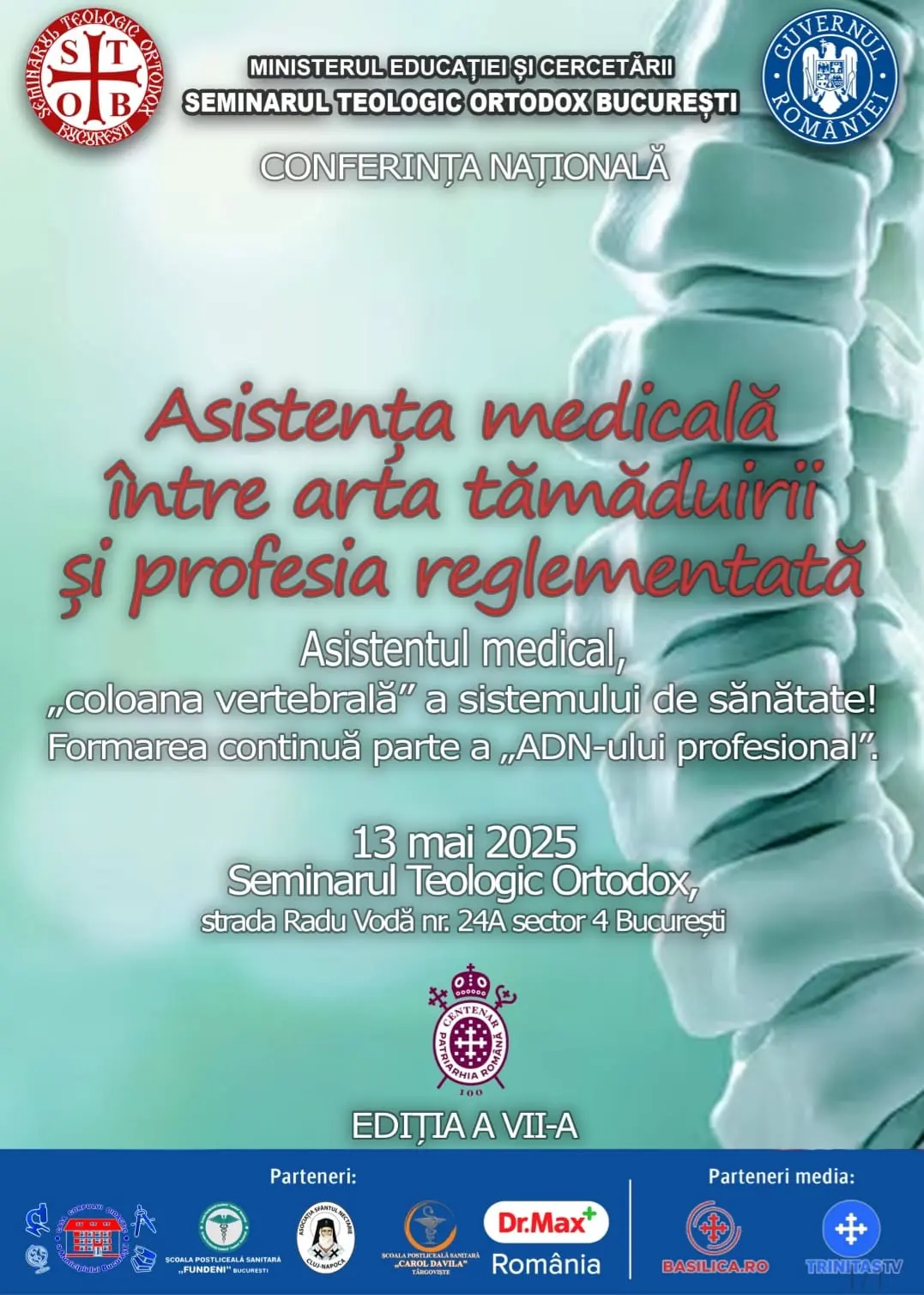 Școala Postliceală Sanitară a Seminarului Teologic din București anunță o nouă ediție a Conferinței Naționale „Asistentul medical, coloana vertebrală a sistemului de sănătate”.
