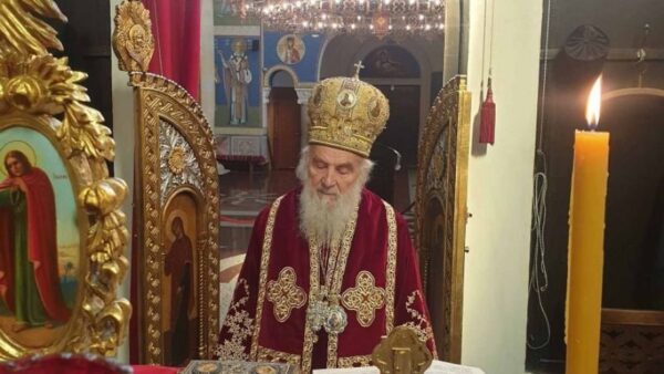 His Holiness Patriarch Serbian Irinej officiated Divine Liturgy of St. Basil the Great at the Convent of the Blessed Virgin Mary in Belgrade, on the Fifth Sunday of Lent, April 5, 2020, offering his prayers for the salvation of all.