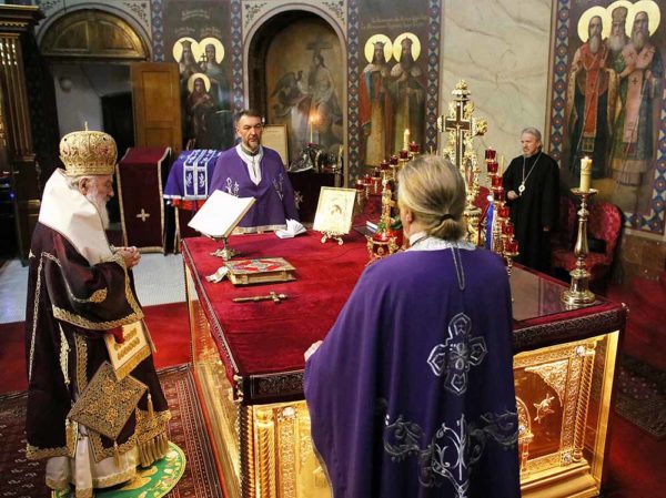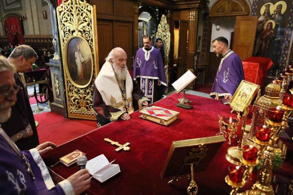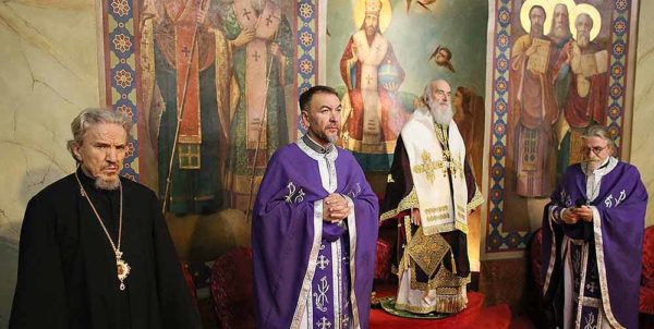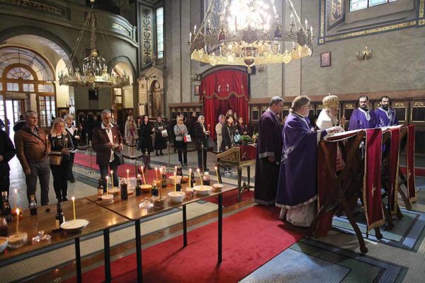 In the prayerful presence of His Grace Bishop Mitrophan of Canada, the Patriarch was concelebrated by protopresbyter-staurophor Petar Lukic, presbyter Slavisa Popovic and archdeacon Damjan Bozic. The sermon was delivered by the parish priest of the Cathedral, presbyter Arsen Milovanovic. His Holiness Patriarch served a general memorial service on the occasion of Ven. Cyriacus All Souls’ Day.
