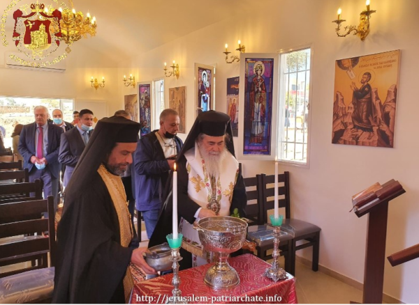 For the Service of the Blessing of the water, His Beatitude was accompanied by His Eminence Archbishop and Secretary-General Aristarchos of Constantina, the Master of Ceremonies Archimandrite Bartholomew and Archdeacon Mark. From Ramallah, the service was attended by the initiator of this project Archimandrite Galaktion, the Steward Fr. James, the Mayor of the town of Ramallah, the Caretakers of the Holy Monastery of the Transfiguration of the Lord in Ramallah and its Byzantine choir members, along with others who supported this God-pleasing and arduous project, which is the result of those who love the beauty of the house of God.
