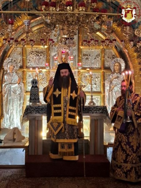 - The Divine Liturgy of the Presanctified Gifts was likewise celebrated at the Horrendous Golgotha by the Elder Sacristan, His Eminence Archbishop Isidoros of Hierapolis, with nuns and a large number of pilgrims participating in prayer.