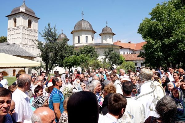 Sfânta Liturghie a fost oficiată de Arhiepiscopul Calinic al Argeşului şi Muscelului la altarul de vară al mănăstirii.