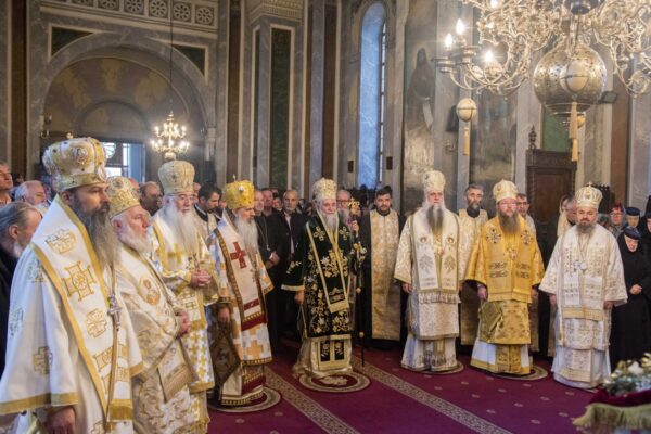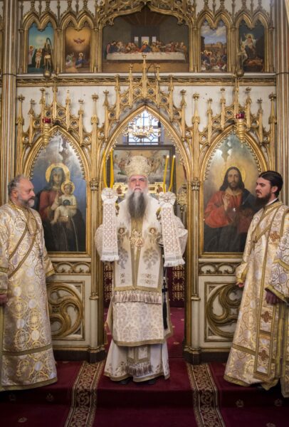 Sfânta Liturghie de hram a fost oficiată de un sobor format din șapte ierarhi ai Bisericii Ortodoxe Române, prezidat de Mitropolitul Irineu, informează Arhiepiscopia Râmnicului: