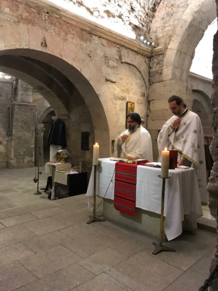 Sfânta Liturghie a fost oficiată de protos. Simeon Mureșan, paroh al bisericii Sfinții Trei Ierarhi din Marseille, și de pr. Mihai Antonin de la Biserica Sfântul Ioan Casian din Aix-En-Provence, informează Alexandru Ojică, Mitropolia Europei Occidentale şi Meridionale.