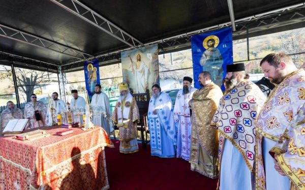 După slujba de sfințire, a urmat Sfânta Liturghie, oficiată la un Altar amenajat în apropierea lăcașului de cult.