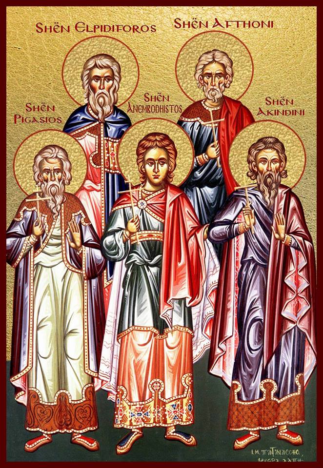 Dëshmorët Akindini, Pigasi, Afthoni, Elpidofori dhe Anempodisti. Omologjet Andoni i Selanikut (ish mitropolit i Durrësit).