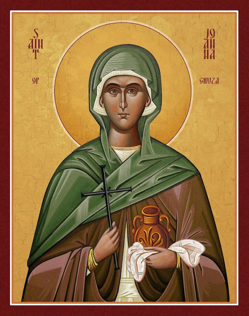 Ishte bashkëshortja e Kuzit, kujdestarit të pasurisë së mbretit Herod. Jisui e shëroi në mënyrë të mrekullueshme nga një sëmundje (Llk.8:3) dhe ajo i shërbeu bashkë me gra të tjera të shenjta, gjatë gjithë kohës që predikoi, që nga Galileja deri në Jude. Ajo ishte dëshmitare e Pësimit të Tij jetëprurës dhe, mëngjesin e Pashkës, shkoi në varr me miro, bashkë me Maria Magdalenën dhe Marinë, nënën e Jakovit.