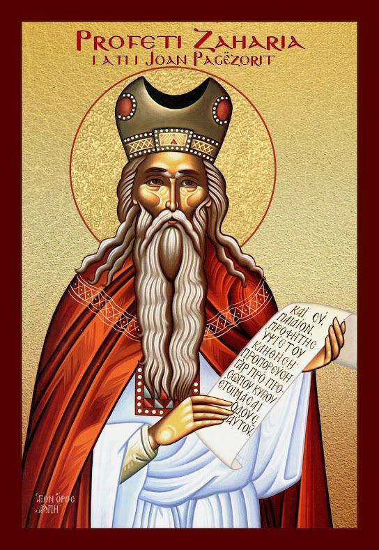 Zaharia ishte levit dhe pasardhës i priftit të madh, Abiatharit. Jetonte në Jerusalem me gruan e tij, Elisabetën, që vinte nga fisi i Aaronit. Që të dy ishin të drejtë. Zbatonin me dashuri urdhërimet e Zotit, por ishin pa fëmijë deri në moshë të madhe. Kur Zaharia kishte radhën si kryeprift, hyri në Tempull për të djegur temjan dhe pa në të djathtë të Shenjtërores Kryeengjëllin Gabriel. Tërë shkëlqim, ai e lajmëroi plakun se Perëndia e kishte dëgjuar lutjen e tyre dhe se në pleqëri do t’u dhuronte një bir, të cilin do ta quanin Joan. I dërguari i Zotit i tha: “Ai do të jetë i mbushur me Frymën e Shenjtë që në barkun e nënës dhe do të ecë përpara Zotit dhe shumë njerëz do t’i kthejë tek Ai” (Lluk. 1.16). Zaharia u çudit nga këto fjalë dhe hezitoi të besonte lajmin e kryeengjëllit, kështu iu lidh goja deri ditën kur lindi djali.