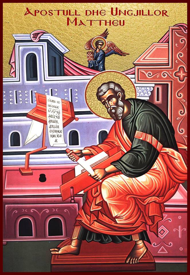 Apostulli i shenjtë Mattheu në fillim quhej Levi. Ai ishte biri i Alfeut dhe ushtronte profesionin e doganierit. Një ditë, tek rrinte në doganë, Jisui kaloi dhe një turmë e ndiqte nga pas, e etur për mësimet e tij. Zoti ktheu shikimin nga Mattheu e i tha: “Më ndiq!” Publikani u ngrit dhe e ndoqi pa pasur asnjë mendim dhe asnjë vështrim për atë që la pas. Para se të nisej për udhën në gjurmët e Krishtit, ai shtroi një darkë në shtëpinë e vet, ku morën pjesë Jisui dhe dishepujt e Tij, si dhe një numër i madh doganierësh dhe mëkatarësh publikë. Meqë farisenjtë u skandalizuan, Zoti tha: “Nuk janë të shëndoshët që kanë nevojë për mjek, por të sëmurët. Nuk erdha të thërras të drejtët, por mëkatarët në pendim” (Lluk. 5.27; Matth. 9.13; Mark. 3.17).