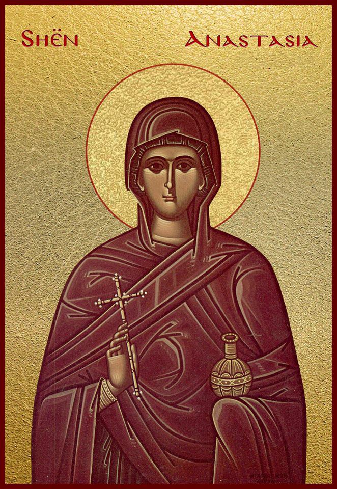Shën Anastasia, emri i së cilës do të thotë ngjallje, jetoi në Romë, në kohën e Dioklecianit kur ky mbretëronte në perandorinë e Perëndimit (284-305). I ati i saj, Preteksatusi, ishte një pagan i pasur dhe i famshëm, ndërsa e ëma Fausta ishte besimtare. Kjo, pasi mbolli në shpirtin e vajzës farat e para të besimit, ia besoi Krisogonit, i cili ishte njeri i nderuar, plot me urtësi dhe dije në Shkrimet e Shenjta. Më pas, i ati e martoi, pa dëshirën e saj, me një njeri me sjellje mjerane, Publiusin, i cili mendonte të kënaqte me të vetëm dëshirat e tij të ulëta mishore. Duke pasur dashuri të madhe për Dhëndrin qiellor dhe për virgjërinë që e bën njeriun të ngjashëm me engjëjt, vajza e re arriti të shmangte marrëdhëniet mishore me të shoqin, duke u shtirur si e sëmurë.