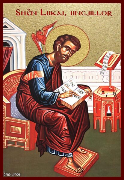 Përveç kësaj, tradita e Kishës raporton se shën Llukai ishte i pari që pikturoi ikona. Ai pikturoi dhe ikonën e Hyjlindëses, kur ajo ishte ende mbi tokë. Hyjlindësja e priti me gëzim dhe i tha: “Hiri i atij që u lind prej meje qoftë në të!” Më pas, shën Llukai pikturoi edhe ikona të tjera të saj dhe të apostujve, duke i lënë Kishës këtë traditë të shenjtë e të perëndishme të nderimit të ikonave të Krishtit dhe shenjtorëve të tij, prandaj edhe nderohet si mbrojtësi i ikonografëve.