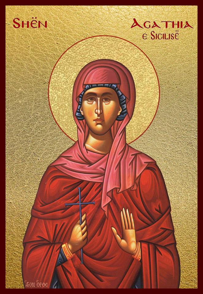 Shën Agathia, një prej martireve më të njohura të Perëndimit, lindi në një familje fisnike të Katanias në Sicili. Që në moshë tepër të re ia përkushtoi veten Zotit dhe punoi për lartësimin e bukurisë së saj të rrallë me besimin e vërtetë dhe virtytet e shenjta.