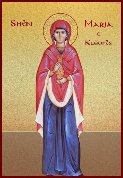 Maria, gruaja e Kleopës, ishte një nga gratë e shenjta që i shërbenin Jisuit gjatë misionit të Tij publik, nga Galileja në Jerusalem. Ajo e shoqëroi deri në Kalvar, duke vajtuar pranë Kryqit, bashkë me Hyjlindësen dhe shën Maria Magdalenën, ndërsa apostujt u larguan. Të tretën ditë, në të gdhirë, bashkë me Miroprurëset e tjera shkoi te varri me aroma. Kështu u bë dëshmitare e Ngjalljes dhe shkoi t’ua shpallte edhe apostujve.