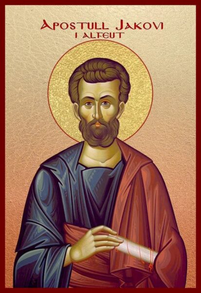 Shën Jakovi, biri i Alfeut, ishte vëllai i ungjillorit Matthe tagrambledhësit. Bënte pjesë në grupin e të dymbëdhjetë apostujve dhe u shpalli Lajmin e mirë paganëve. Zelli i tij për Perëndinë ishte kaq i madh, sa pa pasur aspak frikë se mos e zinin, hodhi përdhe tempujt e idhujve. Me Hirin e Shpirtit të Shenjtë, dëbonte frymët e këqija, shëronte të sëmurët dhe bënte shumë mrekulli, madje paganët morën zakonin ta quanin “farë hyjnore” sepse ai shpërndante farën e Fjalës Hyjnore ne zemrat e njerëzve.