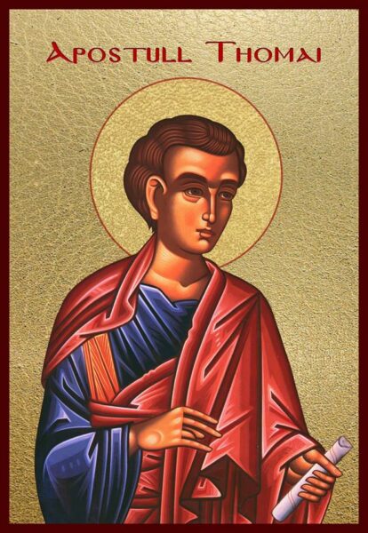 Apostulli i shenjtë Thoma, i quajtuar gjithashtu Dhidhimos, lindi në Jude nga prindër të varfër, por i transmetuan një përkushtim të madh për Ligjin e Moisiut. Që i ri, u largua nga lojërat ngatërrestare të shokëve për t’iu kushtuar leximit dhe meditimit të Shkrimeve. Njohja e Fjalës së Perëndisë, gjithashtu edhe predispozitat e mira të ndërgjegjes së tij, i lejuan të njihte pa hezitim që Krishti ishte Mesia i lajmëruar nga profetët, i Cili iu shfaq dhe e ftoi apostullin për ta ndjekur. La varkën dhe rrjetat dhe u bë një nga të dymbëdhjetët. U persekutua, u dëbua, u qëllua me gurë nga judenjtë, e ndoqi kudo Zotin me zell të zjarrtë dhe madje, ishte ai, Thomai që, kur Krishti mori rrugën e Jerusalemit për t’u dhënë në duart e atyre që do ta vrisnin, u tha dishepujve të tjerë: “Le të shkojmë dhe ne që të vdesim bashkë me të!” (Jn. 11.16).