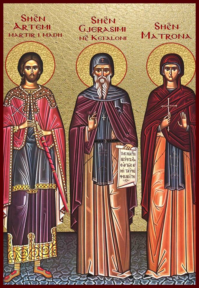 Dëshmor i madh Artemi. Oshënar Gjerasimi në Kefaloni. Oshënare Matrona në Hios.