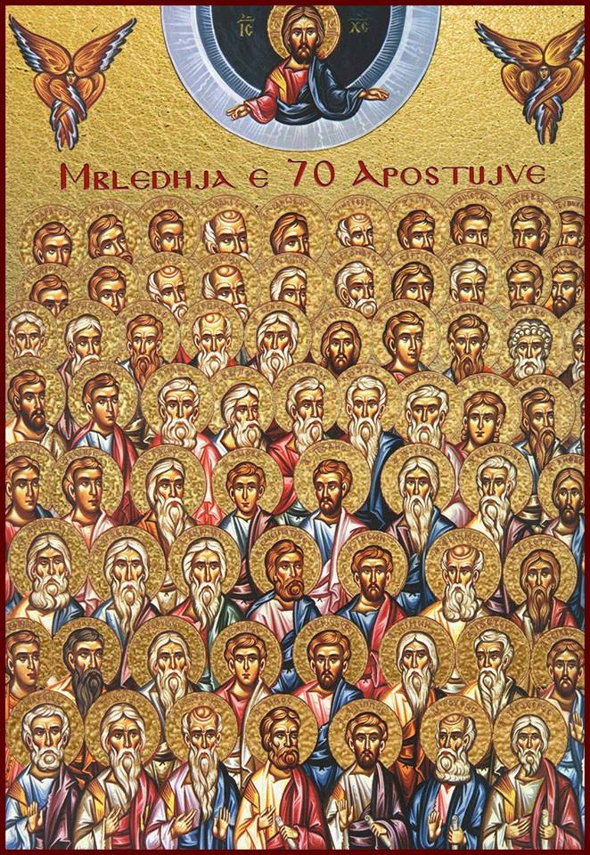 Pasi zgjodhi dymbëdhjetë apostujt e Tij, shokë rrugëtimi dhe dishepuj të privilegjuar, të cilëve u rezervoi mësimet e Tij më të larta, Zoti ynë Jisu Krisht zgjodhi 70 (sipas të tjerëve 72) dishepuj të tjerë, mes numrit të madh të atyre që e ndiqnin, për të shkuar para Tij, pa trastë, pa sandale, dhe të përgatisnin ardhjen e Tij në çdo qytet dhe vend ku kalonin, duke kryer mrekulli dhe duke shpallur se Mbretëria e Perëndisë është afër (Lluk. 10). Këtij numri, simboli i përsosmërisë dhe i shumicës (7, numër i përsosur, dhe 10, shenjë e sasisë), i shtohen dhe dishepuj të tjerë që braktisën gjithçka për të ndjekur Krishtin dhe, që nga Ngjitja e Tij në Qiej deri në Pentikosti, qëndronin në dhomën e sipërme, duke këmbëngulur në lutje.
