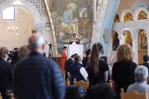 Shërbesa e Mëngjesores dhe Mbrëmësores ndërthurur me Liturgjinë e Shën Vasilit të Madh të së Enjtes së Madhe e të Shenjtë, në Katedralen “Ngjallja e Krishtit”