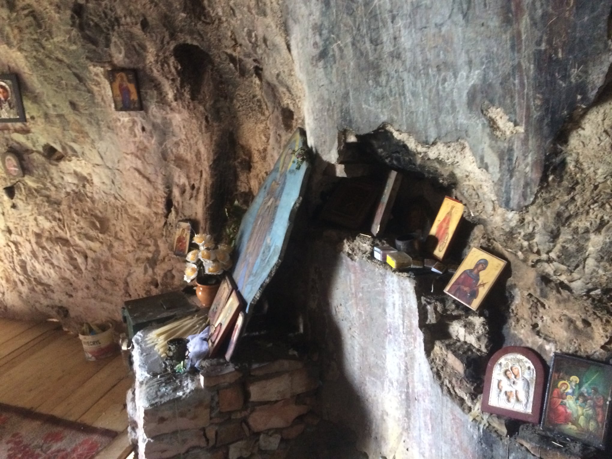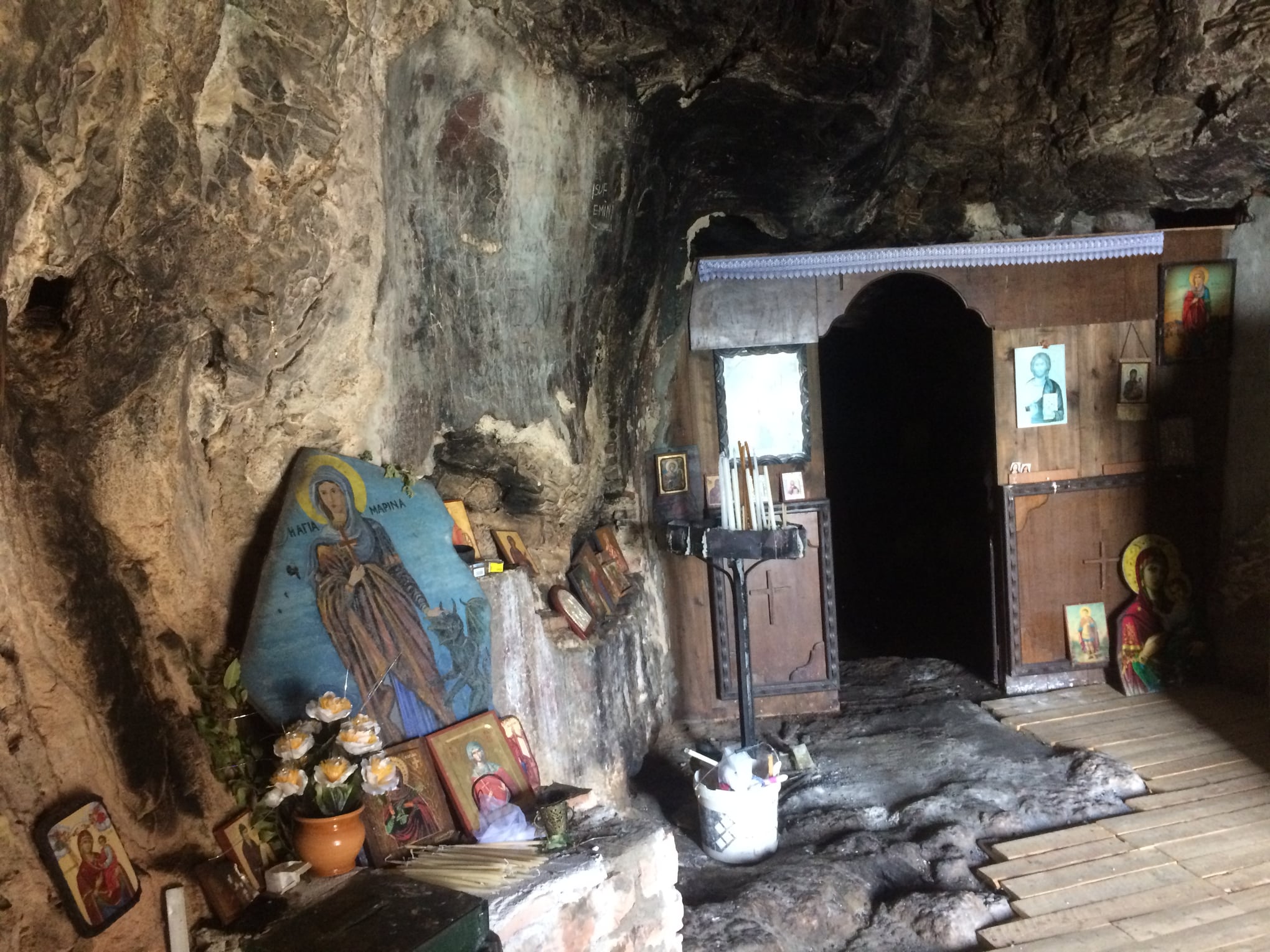 Sektori i Kulturës Kombëtare në Sarandë bën të ditur se “e gjithë shpella është e transformuar në një kishë në periudhën mesjetare dhe disa nga faqet shkëmbore të shpellës janë pikturuar me afreska. Ajo është me dy kate ku ambienti i katit të poshtëm është 6 m i gjatë, 3.50 m i gjerë dhe 7 m i lartë”.