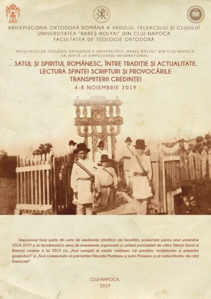 Facultatea de Teologie Ortodoxă din Cluj-Napoca va organiza în perioada 4-8 noiembrie 2019 Simpozionul Internațional „Satul și spiritul românesc, între tradiție și actualitate. Lectura Sfintei Scripturi și provocările transmiterii credinței”.
