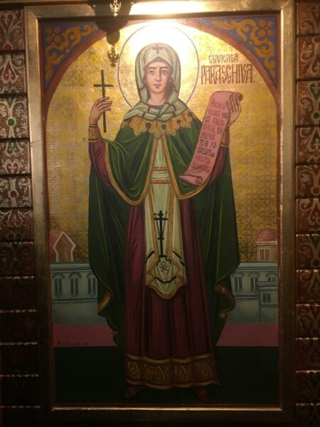 Potrivit Părintelui paroh Bunescu Bogdan, comunitatea parohială şi-a dorit un veşmânt al Sfintei Cuvioase Parascheva de la Iaşi, întrucât este „singura biserică din Sibiu ocrotită de Sfânta Parascheva”.