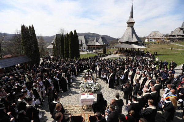 După ora 14:00, ierarhii, împreună cu un sobor de preoţi şi diaconi, au săvârșit slujba Înmormântării pentru pr. Gheorghe Urda, în curtea Mănăstirii „Soborul celor 12 Sfinți Apostoli” Bârsana.