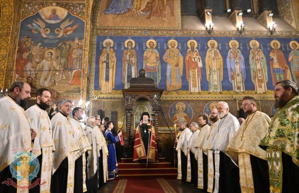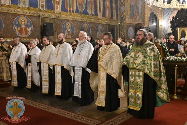 The evening service was presided over by Metropolitan Chrysostomos of Chalkida, concelebrating with Archpriest Petar Slavov, president of the church council, members of the cathedral clergy, clergy of the city of Sofia, and deacons led by Protopresbyter Ivan Petkov. The hymns were rendered by the choir “St Naum of Ohrid,” under the direction of Dr. Andrey Kasabov, Secretary of the Holy Metropolis of Sofia.