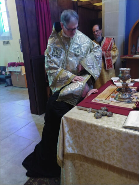 The next day Subdeacon Sergius Vlas was ordained into the holy diaconate by His Grace Bishop ANTHONY; deacons James Akin and Joseph Olas served as sponsors. Deacon Sergius is one of four members of the parish who have completed the Antiochian House of Studies over the past decade. Currently there is another member who is beginning the course this fall. Regarding these graduates Fr. Daniel Hackney says, “being in a remote area with respect to Orthodoxy (the closest parishes are some two hours away), we felt it important to create as many ties to our Archdiocese as possible; the Antiochian House of Studies is one means to achieve this.”