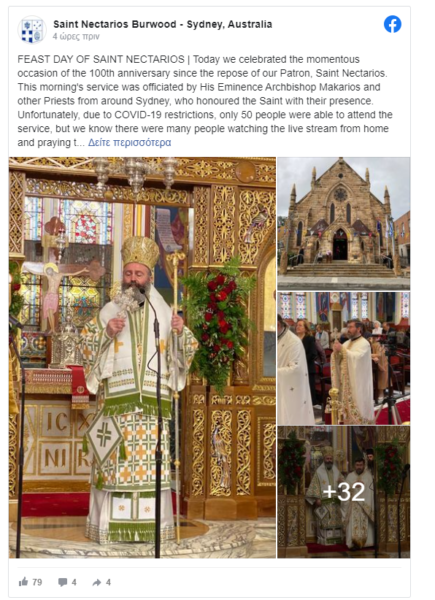 09/11/2020 09/11/2020 St Nectarios Burwood today commemorated 100 years since the repose of their patron saint with a special church service officiated by His Eminence Archbishop Makarios of Australia and priests from across Sydney. Due to coronavirus restrictions, only 50 people were able to attend the service, but parishioners continued to flock to the church throughout the...