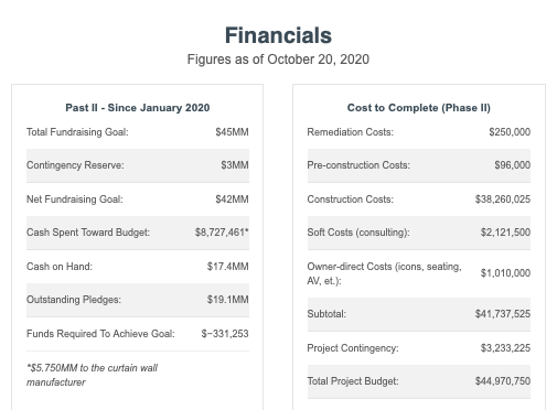 The outstanding pledges are $19.1MM and while we continue to encourage the fulfillment of all pledges, we are actively seeking additional gifts that will augment the Endowment for the Shrine.