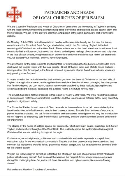 Statement by the Patriarchs and Heads Of Churches Of Jerusalem