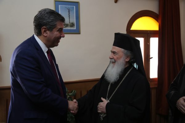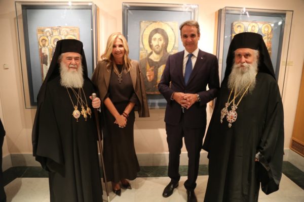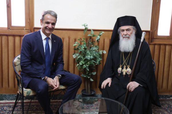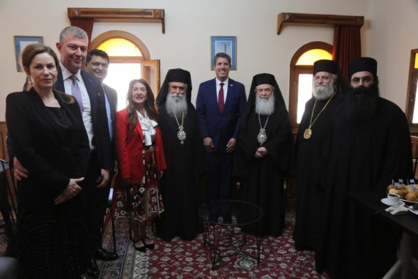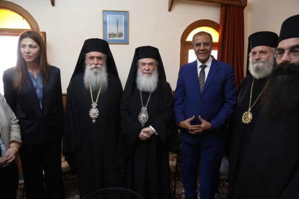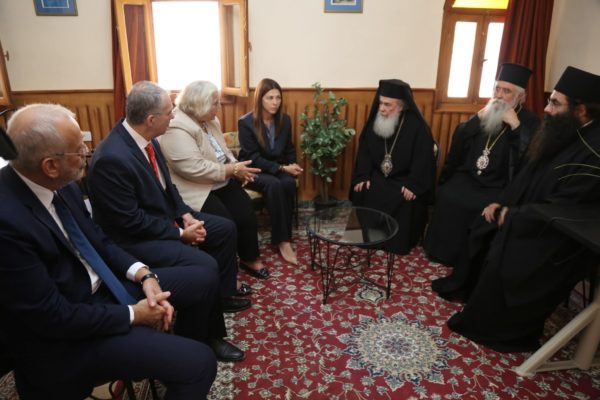 Furthermore, His Beatitude held a cordial meeting with His Excellency the Prime Minister of the Hellenic Republic, Mr. Kyriakos Mitsotakis, during which matters concerning the Patriarchate and the general situation in the Middle East were discussed in a warm and fruitful atmosphere. His Beatitude also met with Her Excellency Ms. Alexandra Papadopoulou, Deputy Minister of Foreign Affairs; Her Excellency Ms. Sofia Zacharaki, Minister of Education, Religious Affairs, and Sports; and His Excellency Mr. Georgios Kalantzis, Secretary-General for Religious Affairs, to address issues related to the spiritual, cultural, philanthropic, and national mission of the Patriarchate of Jerusalem.