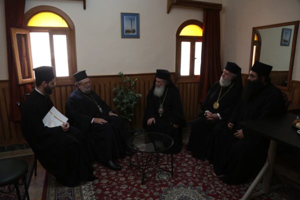 His Beatitude, together with the honourable members of the venerable Holy Sepulchre Brotherhood, arrived at the God-trodden Mount Sinai, where they were warmly received in fraternal love and joy in Christ by the Fathers of the Sinaitic Brotherhood.