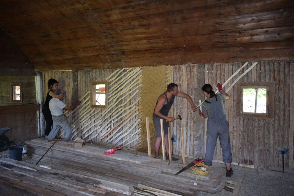La primul atelier de tencuială interioară cu pământ local și paie, studenții, împreună cu mai mulți meșteri din zona Făgetului și Lipovei, au realizat, în spațiul naosului, suportul din alun și un prim strat de tencuială, precum și probe pentru următorul strat de tencuială.