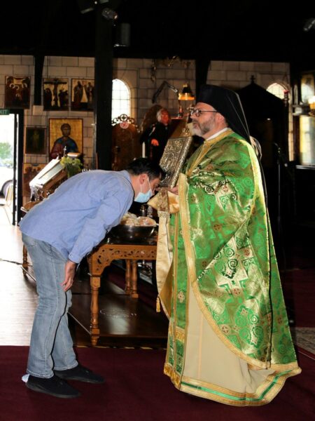 On Sunday, September 20, His Eminence Archbishop Nikitas presided over Matins and the Divine Liturgy at the Church of Saint Eleftherios in Leyton, E. London. At the end of the Divine Liturgy His Eminence gave the office of Spiritual Father to the Chancellor of the Archdiocese, The Very Revd Archimandrite Dr Nikodemos Anagnostopoulos.