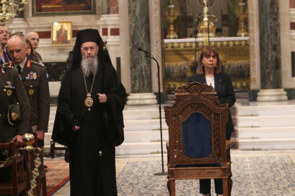 The President of the Hellenic Republic, Katerina Sakellaropoulou, honoured the Divine Liturgy with her presence, underscoring the national and religious significance of the feast for the country.