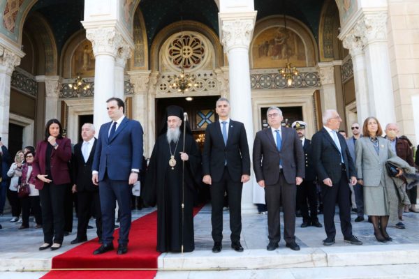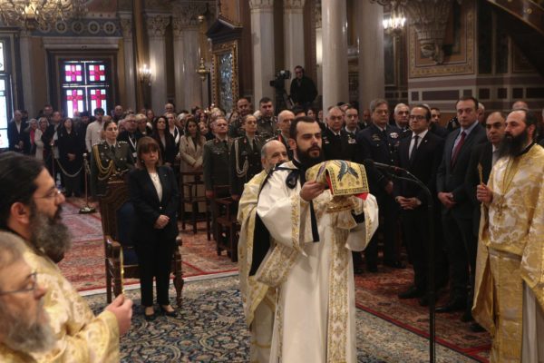 The President of the Hellenic Republic, Katerina Sakellaropoulou, honoured the Divine Liturgy with her presence, underscoring the national and religious significance of the feast for the country.