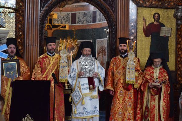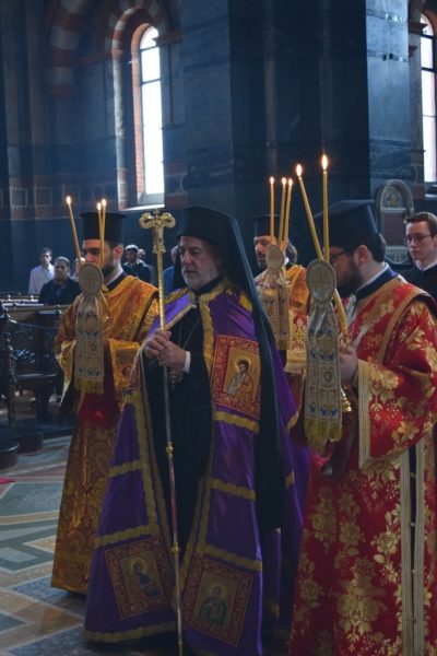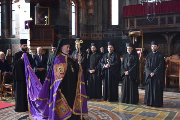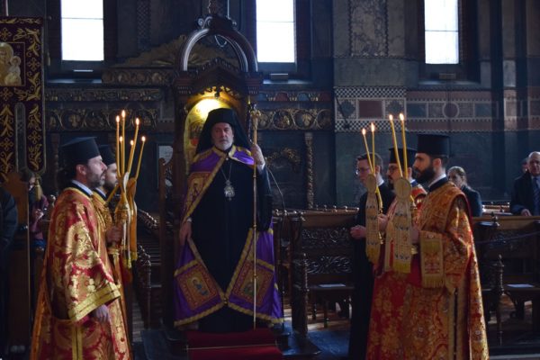 On Sunday, 24th March 2024, His Eminence Archbishop Nikitas of Thyateira and Great Britain presided over Matins and celebrated the Divine Liturgy for the first Sunday of Holy and Great Lent, known as the Sunday of Orthodoxy, at the Archdiocesan Cathedral of the Divine Wisdom in Bayswater, London. Concelebrating with His Eminence Archbishop Nikitas were His Eminence Metropolitan Athanasios of Colognia and His Grace Bishop Gregory of Mesaoria, of the Church of Cyprus. Also serving were the Very Revd Archimandrite Nephon Tsimalis, Protosyncellus of the Archdiocese; the Very Revd Archimandrite of the Ecumenical Throne Theonas Bakalis, Priest-in-charge of the Cathedral; the Very Revd Archimandrite Aristarchos Grekas, of the Church of Greece; the Very Revd Archimandrite Leonidas Ebralidze, Chancellor of the Georgian Orthodox Eparchy of Great Britain and Ireland; the Revd Archdeacon Dr George Tsourous; and the Revd Deacons Andrea Matei, Dimitrios Mamouchas, and Georgios Ntallas.