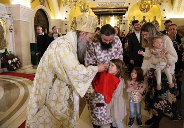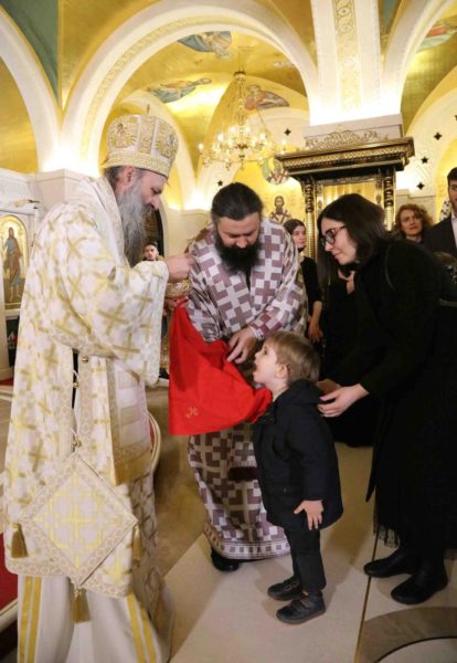 The Holy Hierarchal Liturgy, besides lots of faithful people and children of all ages, was also attended by Minister of Foreign Affairs Mr. Nikola Selakovic and Director of the Office for Cooperation with the Churches and Religious Communities Mr. Vladimir Roganovic, PhD.