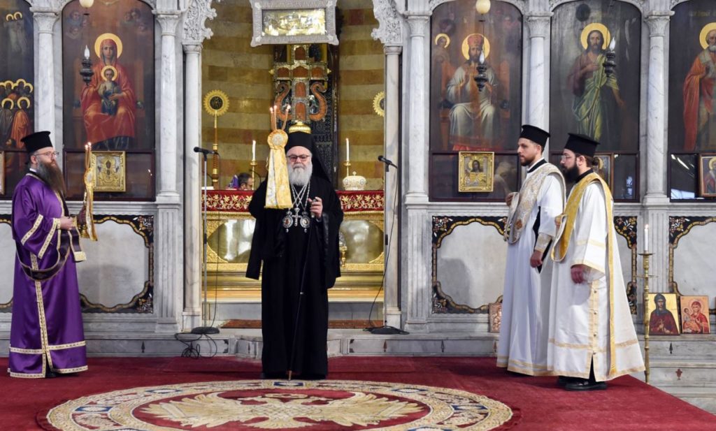 His Beatitude Patriarch John X celebrated the Sunday of Orthodoxy Liturgy at the Mariamiyah Patriarchal Cathedral, with the participation of bishops: Their Grace Bishop Romanos (Al-Hannat), Moussa (Al-Khoury), and Ioannis (Batach), along with many priests and deacons. During the Divine Liturgy, His Beatitude ordained Deacon Kyrillos Qubbajeh as a priest of the Lord, and Brother Fadi Abu Sbeiha as a deacon, bearing the name Nektarios. At the end of the Liturgy, His Beatitude congratulated the newly ordained, invoking holiness upon them and their families.