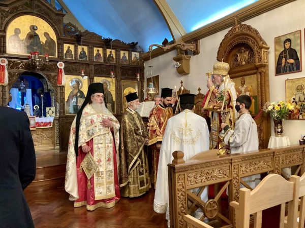 On Sunday, 23rd April 2023, the Sunday of Thomas, His Eminence Archbishop Nikitas of Thyateira and Great Britain presided over Matins and concelebrated the Divine Liturgy at the Church of St. George in Kingston-upon-Thames. Among those concelebrating were the Priest-in-charge, Very Revd Archimandrite Aemilianos Papadakis, the Vicar General Protopresbyter Konstantinos Garibaldinos, Reverend Oeconomos Nikolaos Kokkinos, and Archdeacon Dr. George Tsourous.