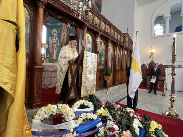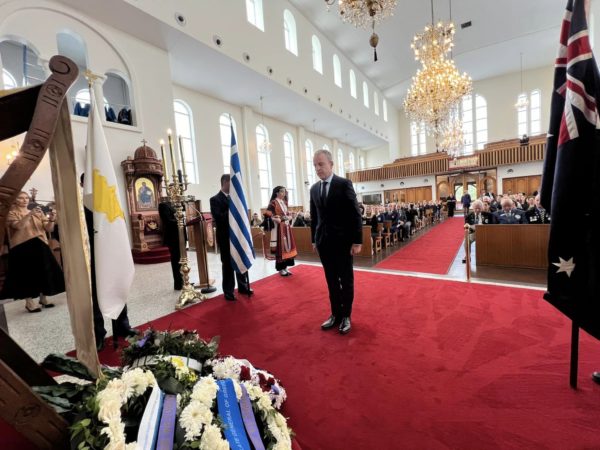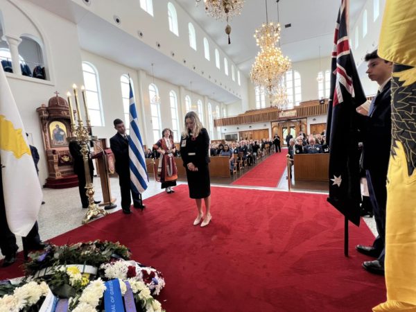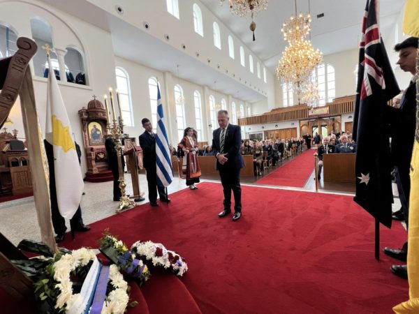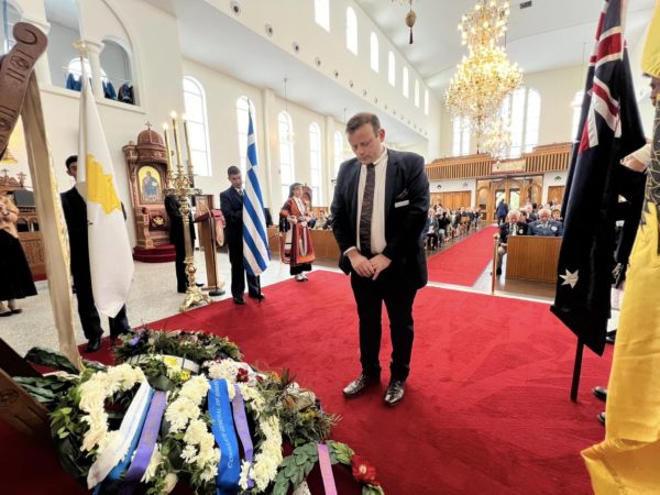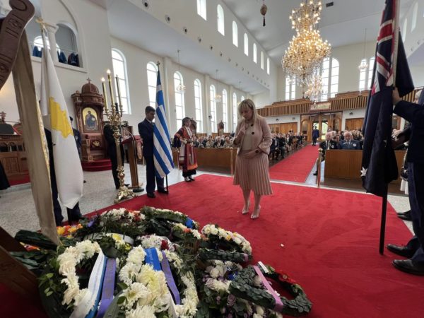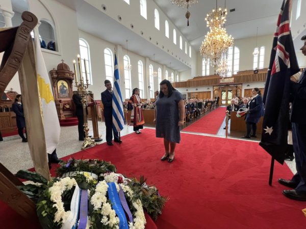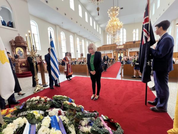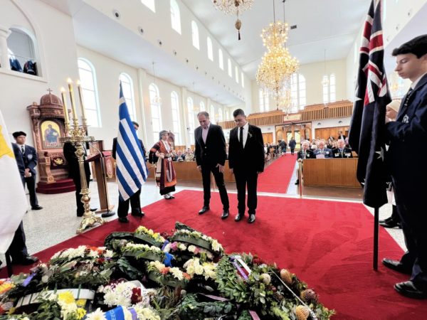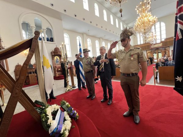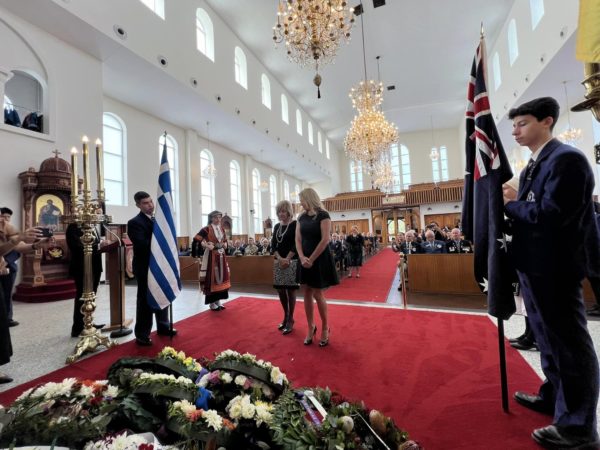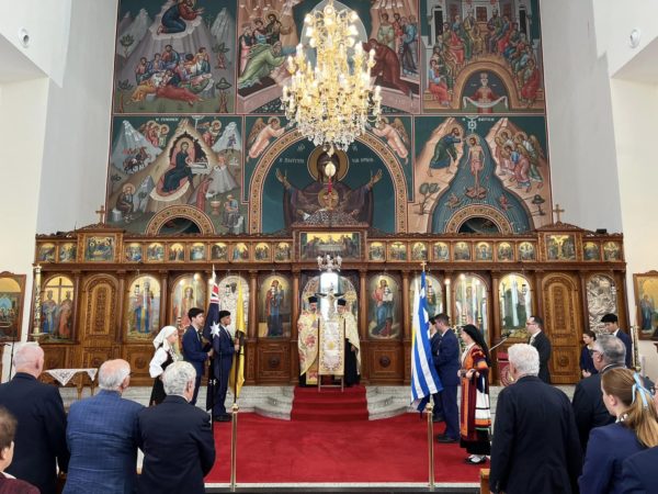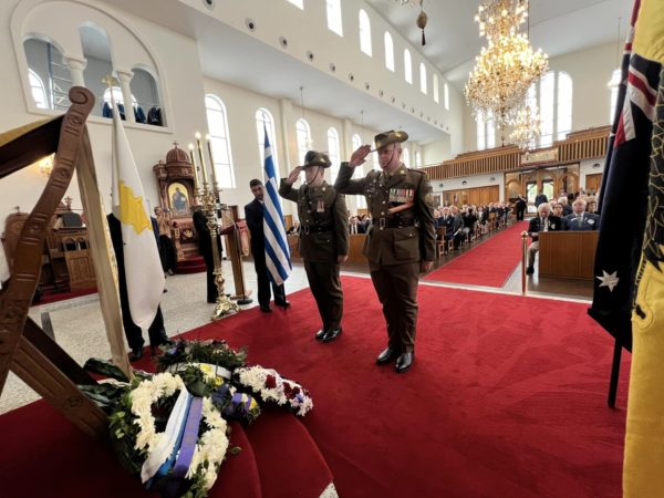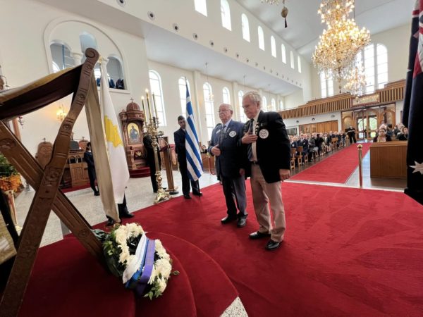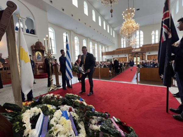 St Spyridon College students impeccably carried the role of flag bearers and recited the Ode in both English and Greek, while wreaths were laid, in front of the Royal Doors of the Altar, by representatives of the Local Government, by the Consul General of Greece in Sydney, Mr. Yannis Mallikourtis, by the president of the Parish of Saint Spyridon, Mr. Elia Economou, as well as by Veterans of the RSL Association, by officers of the Australian Army and by representatives of other agencies and associations.