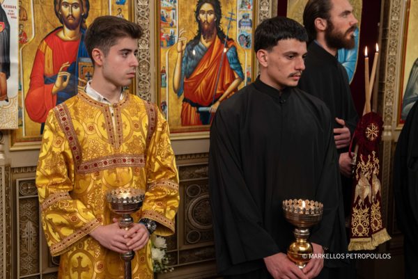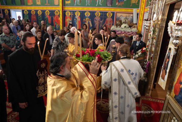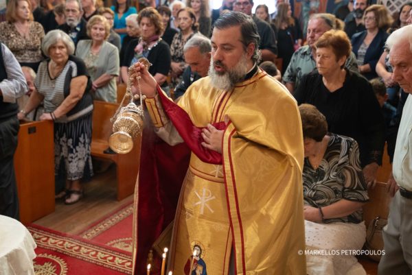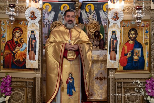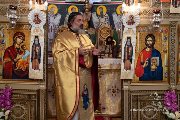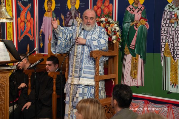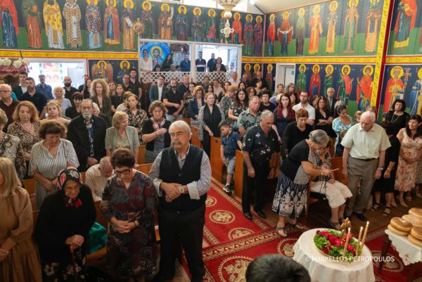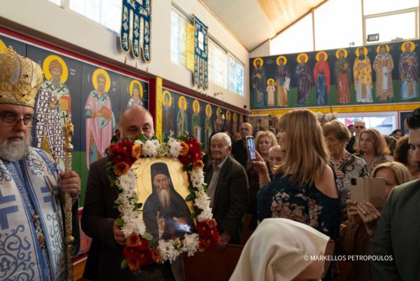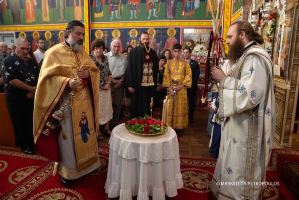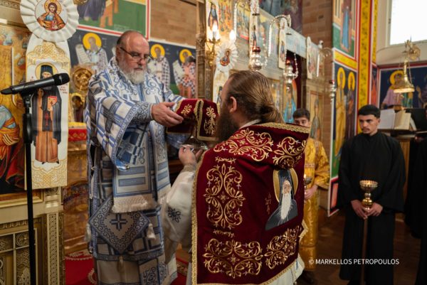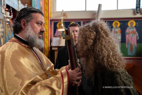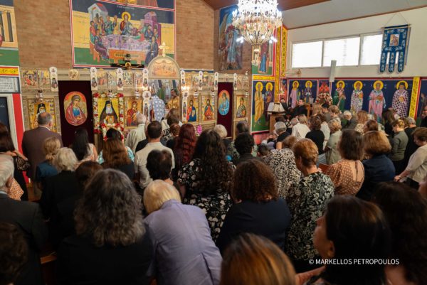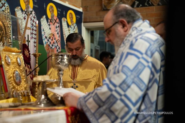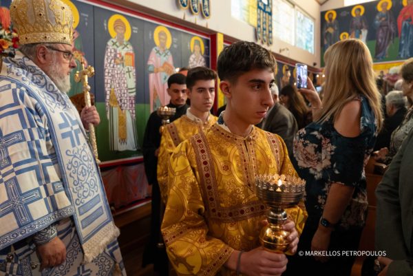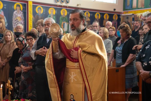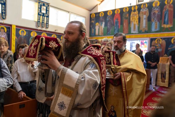 This double celebration was presided over by His Grace Bishop Iakovos of Miletoupolis, on behalf of His Eminence Archbishop Makarios of Australia. During his sermon, Bishop Iakovos analysed the Gospel passage of the day, focusing on the words of the Lord: “If anyone wishes to come after me, let him deny himself and take up his cross and follow me.”