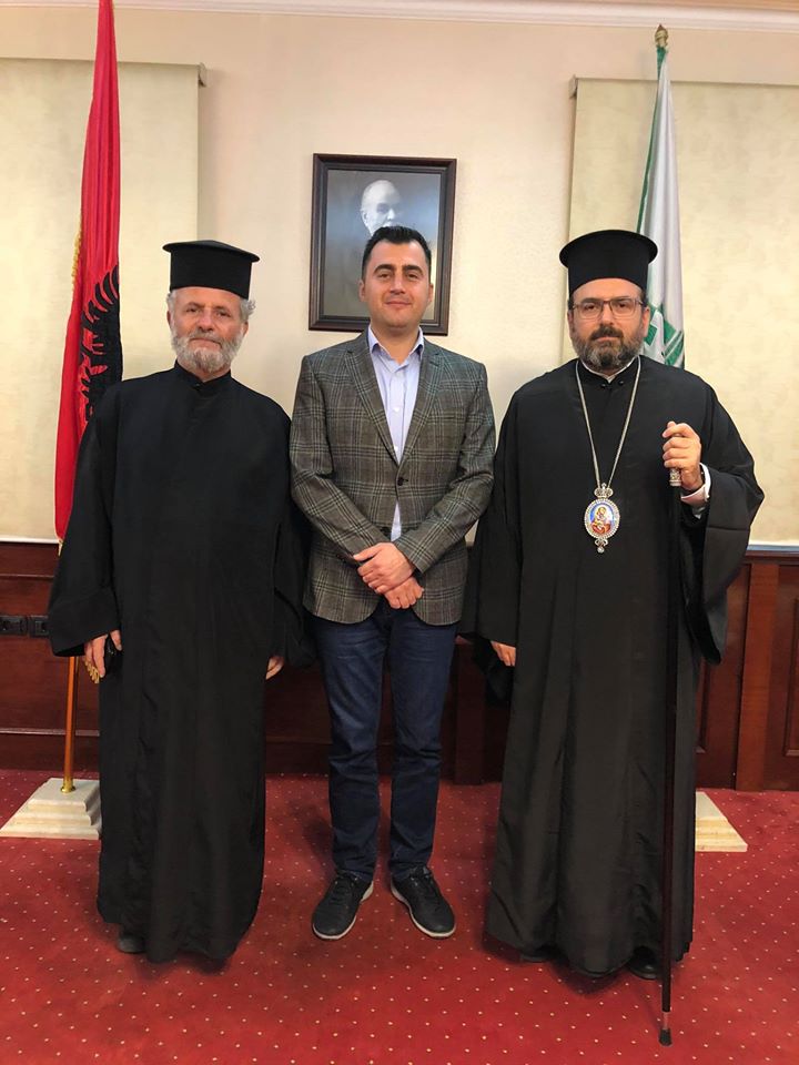 Takim i Mitropolitit te Elbasanit, Shpatit dhe Librazhdit, Imzot Andonit me Kryetarin e Bashkise Elbasan, z Gledian Llatja