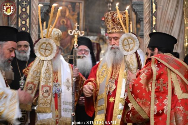 “Long live His Beatitude Theophilos, Patriarch of Jerusalem and all Palestine, and of the Most Honoured Hierarchs around Him!“