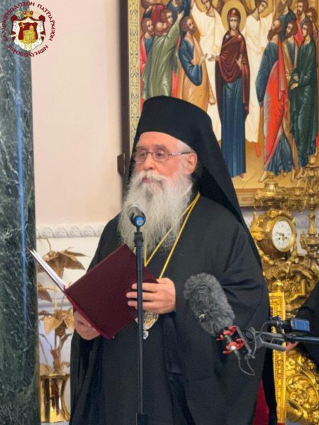 Today, in this holy and solemn hour, the Mother Church of Jerusalem — whose throne “was occupied by James, the brother of the Lord” (Eusebius of Caesarea, Ecclesiastical History II, 1,2) — offers thanksgiving unto the Lord, Who has vouchsafed us to behold in our midst the elevation of a new Hierarch of the venerable Patriarchate of Jerusalem, and Hegumen of the Holy Monastery of the God-trodden Mount Sinai, for the ministry of that sacred place where God was revealed in fire and the Law was given unto man, as it is written: