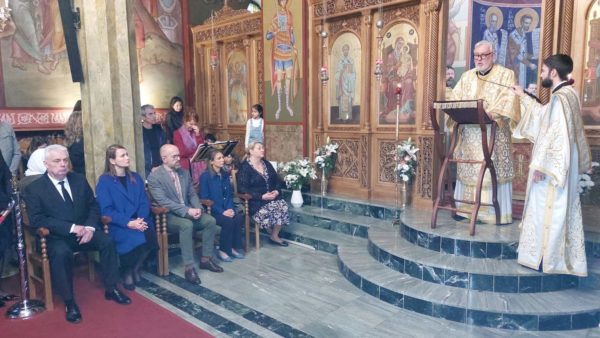 The Metropolitan also thanked the concelebrating Hierarchs, Bishop Dositheos, Bishop Ioakeim of Apollonia and Bishop Apostolos of Tanagra, the other priests who participated in the Divine Liturgy, as well as Gerontissa Ioanna of the Monastery of the Nativity of the Theotokos in Asten, for her blessed presence. Metropolitan Athenagoras also addressed special thanks to the Ambassadors of Greece Her Excellency Ms. Ekaterina Gini, and of Ukraine His Excellency Mr. Oleksandr Karasevych, and of Romania His Excellency Mr. Lucian Fatu and of North Macedonia Her Excellency Ms. Beti Jacheva who were present for the Divine Liturgy, as well as to the Consul General of Ukraine Ms. Mariia Bezdieniezhna. Finally, he thanked the chanters and choirs for their beautiful and angelic chanting and all the faithful who came to participate in this Orthodox Divine Liturgy.