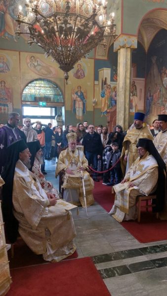 The Divine Liturgy was presided over by His Eminence Metropolitan Athenagoras of Belgium and Exarch of the Netherlands and Luxembourg, and was joined in concelebration by Their Graces, Bishop of the Patriarchate of Georgia, Bishop Dositheos, Bishop Ioakeim of Apollonia, Assistant Bishop of the Holy Metropolis, Bishop Apostolos of Tanagra, Director of the Office of the Representation of the Church of Greece for the European Union, and with the participation of clergy from various origins of the Holy Metropolis and the other Orthodox presences in the Netherlands.