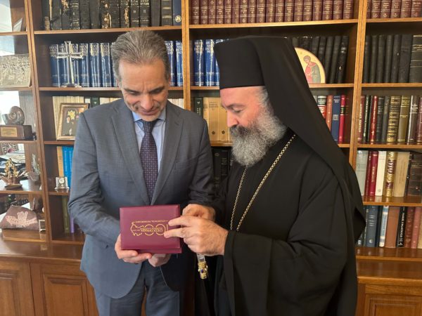 At the end of the meeting, the Archbishop presented Ambassador Venizelos with a commemorative series of coins which were cut for the centenary celebrations of the Holy Archdiocese of Australia, while, before their departure, the two diplomats were guided to the Cathedral of the Annunciation of Our Lady, in which the planned renovation works are in full progress.